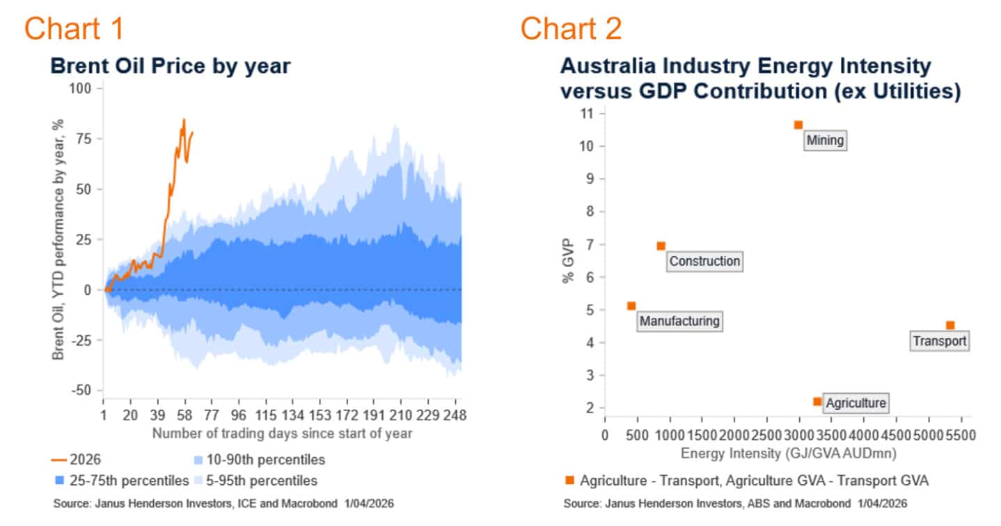Financial markets are beating to oil’s rhythm, with the justifiable concern that a rise in oil prices has consequences for the real economy. The restricting of global energy supply lines can be thought of in a few different phases. We have seen the impacts of phase one, where there is an immediate rise in fuel prices. For Australia, the initial impact on growth is relatively neutral. Australia is a net energy exporter, and so the ability to provide energy to the rest of the world outweighs the immediate restriction of energy coming in, in an aggregate economy sense.