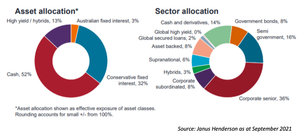 Other allocations include 32% to conservative fixed income, 13% to hybrids/ high yield, and a small 3% allocation to Australian fixed interest. Sector allocation is well diversified with senior corporate debt the largest, at 36% and then semi-government at 16%.