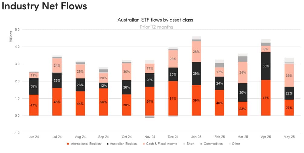 One billion dollars in fixed income ETF inflows helped the ETF industry grow by 5.7% in May, according to the latest Betashares Australian ETF Review.