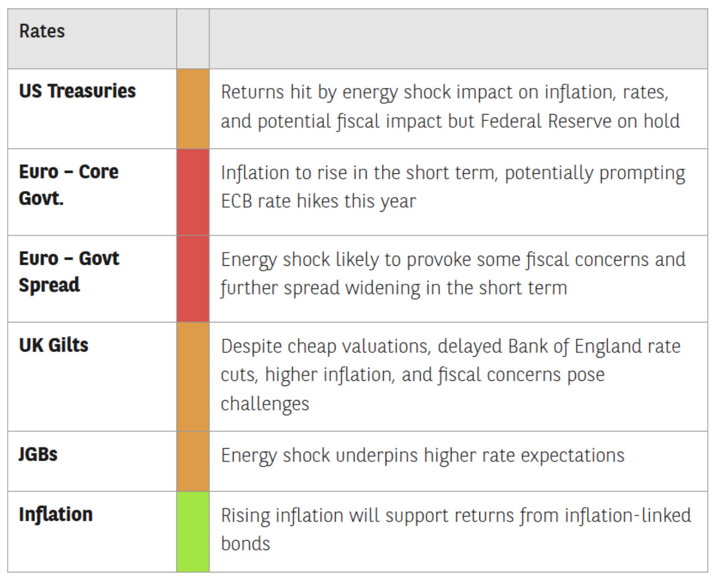 The prospect of higher inflation, resulting from the Middle East conflict, has shifted interest rate expectations; in turn, fixed income market returns have fallen. Short maturity inflation-linked bonds could potentially provide some defence against higher inflation and short-term rates, as they derive most of their return from actual inflation with less sensitivity to interest rate volatility. As a result, investors typically experience less drawdown than in a conventional bond strategy, which has been the case in recent weeks.
