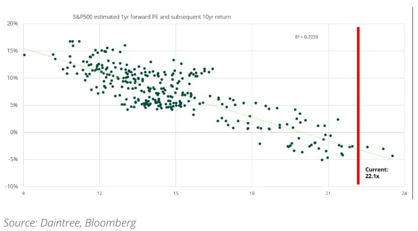 This is particularly problematic in an environment where equity markets are expensive – data on the US market is used as an example below: